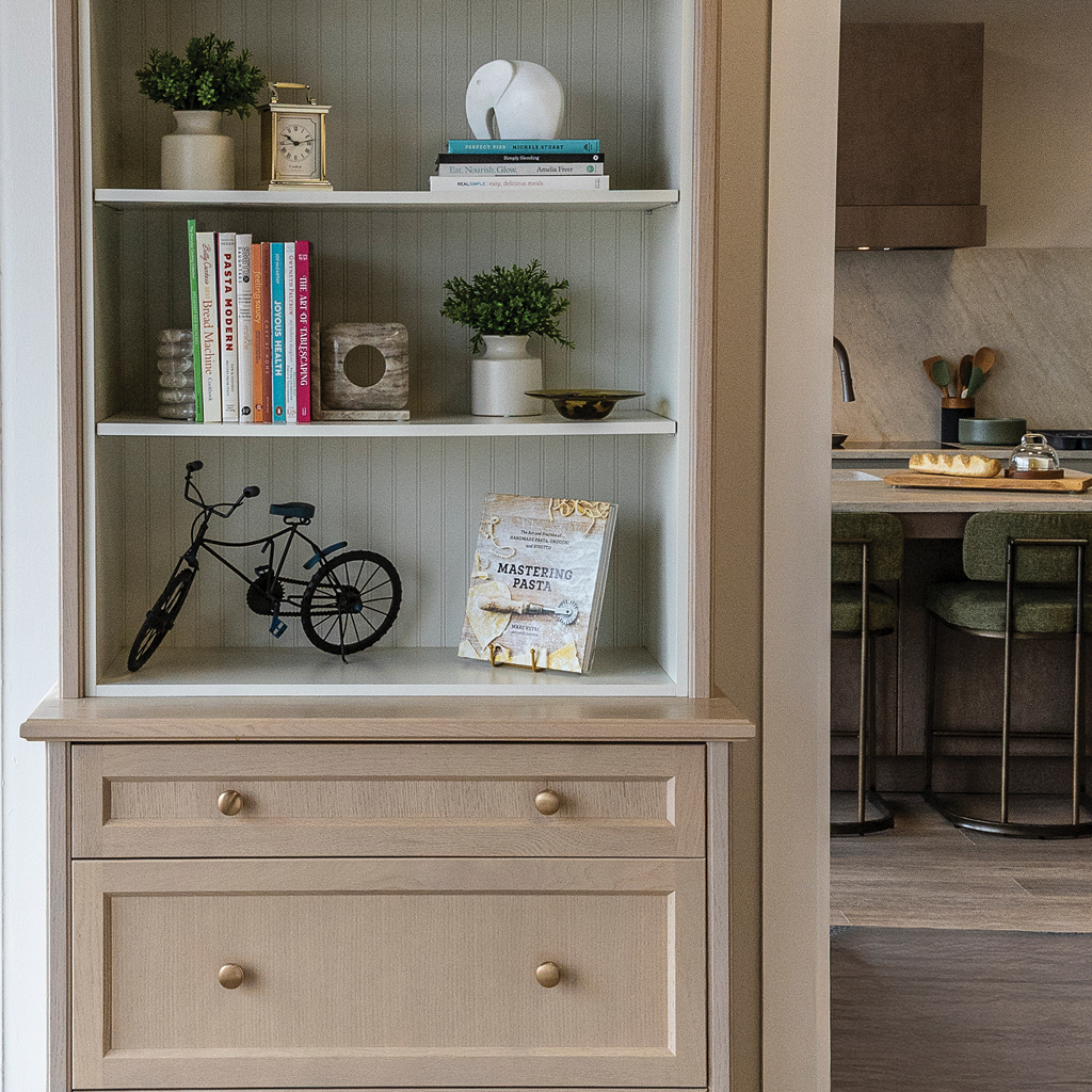 AyA’s designers stay closely attuned to evolving design trends and bring that insight into every project. This year, there is a clear shift toward warm, welcoming spaces featuring natural wood tones, medium-to-dark finishes, and subtle luxury details such as layered lighting and statement hardware. At the same time, thoughtful functionality remains essential, with concealed storage, integrated appliances, and smart organ- ization solutions helping kitchens feel both beautiful and effortless to live in.