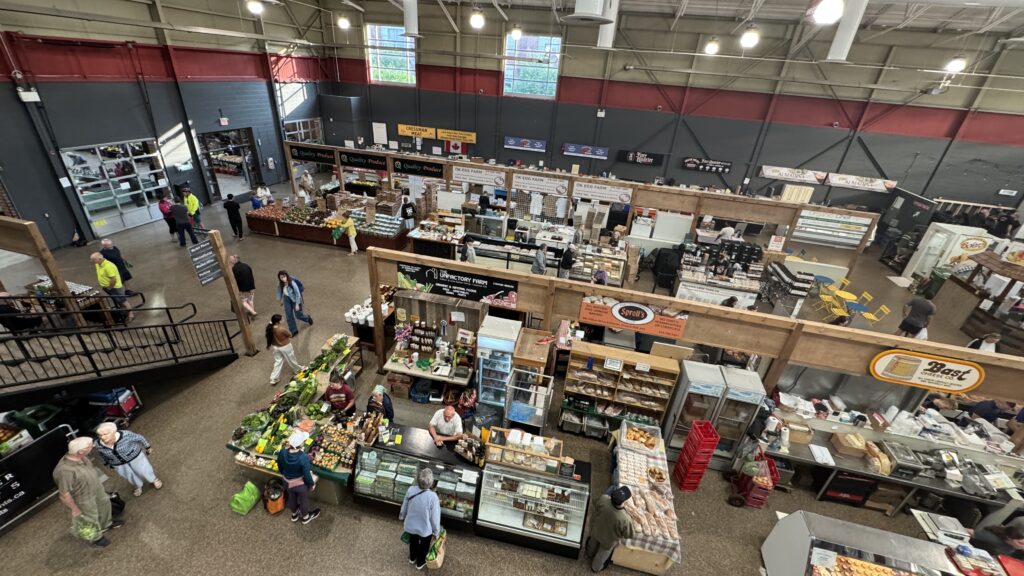 The Cambridge Farmers’ Market offers a quieter, more traditional feel in its historic limestone building near the Grand River. Many vendors have been there for generations, offering fresh produce, deli meats, cheeses, and baked goods.
