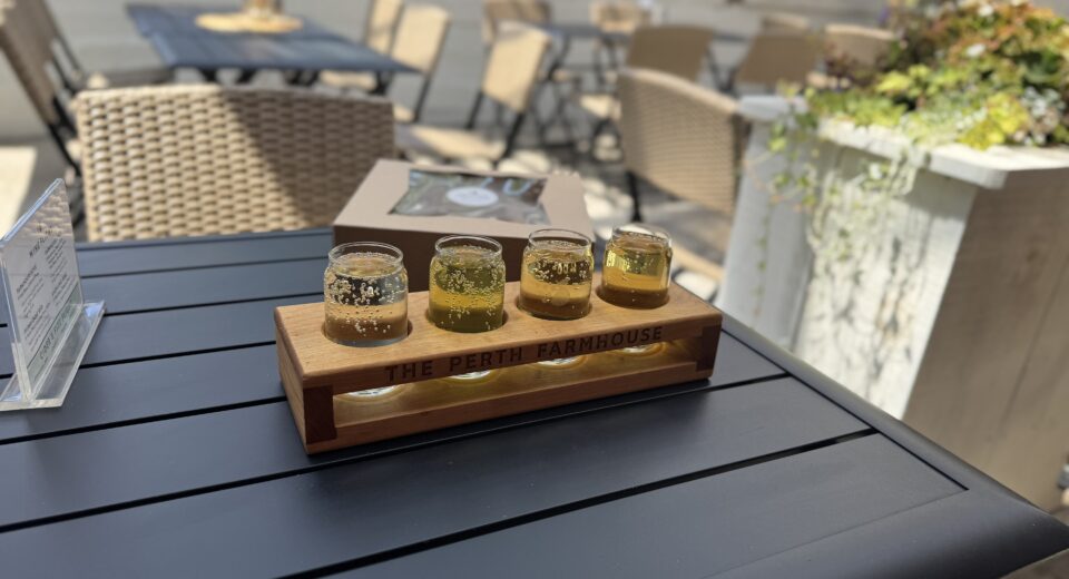 Set on a peaceful 1860s farmstead, The Perth Farmhouse offers a relaxed tasting experience amid rural Ontario’s natural beauty. Guests are invited to unwind during a 90-minute self-guided Sip ‘n Graze featuring wines, ciders, and grazing boxes filled with local cheese, charcuterie, and fresh accompaniments. Afterward, visitors can mingle with the farm’s miniature goats that add a playful touch to this charming blend of flavour and farmland.