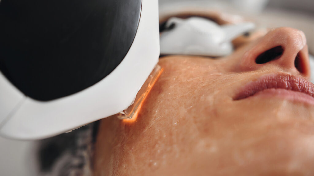 A cooling ultrasound gel is applied to the treatment area, and a handheld device delivers controlled pulses of light across the skin. Most clients report a brief warming sensation or a light snapping feeling.